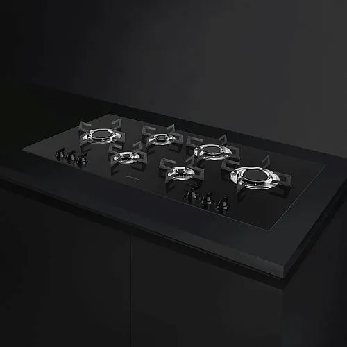 Варочная панель SMEG PVL6106CN выполнена из черной стеклокерамики. Конструкцией предусмотрено 6 конфорок из нержавеющей стали. Применена технология ламинарного вертикального пламени Bladе. Она позволяет сосредоточить тепло на посуде и обеспечить равномерный нагрев. Панель имеет защиту от утечек газа и перегрева.