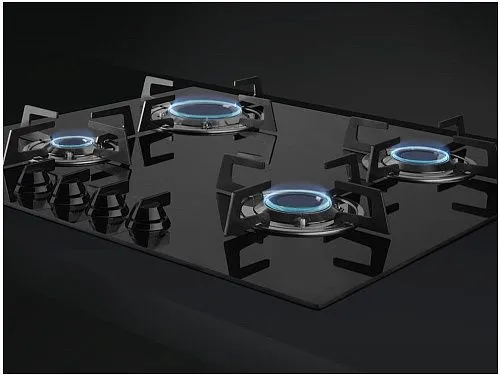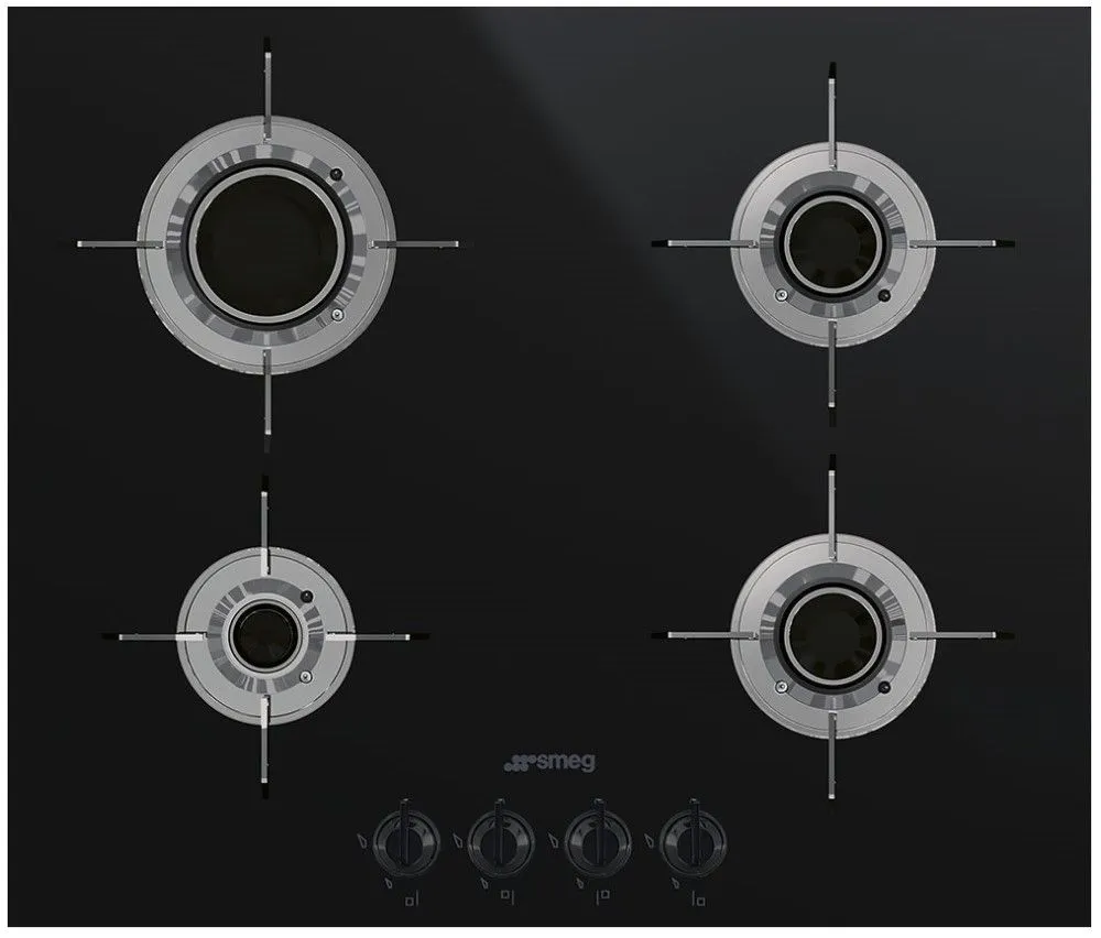 Варочная панель SMEG PVL664CN выполнена из черной стеклокерамики. 4 конфорки настраиваются поворотными переключателями. Технология ламинарного вертикального пламени Bladе позволит сконцентрировать нагрев только на посуде. Система газ-контроль надежно защитит от утечек.