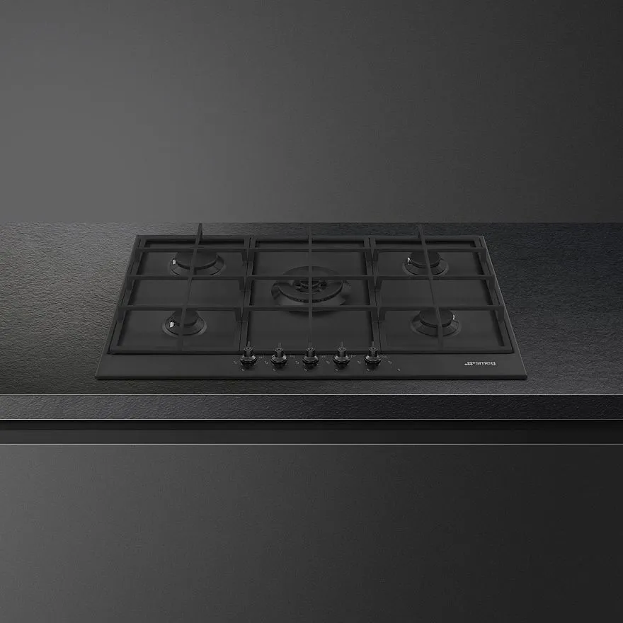 Газовая варочная панель SMEG PX375MB оснащена пятью конфорками разного диаметра, которые зажигаются при помощи электроподжига, не используя спички. Благодаря устойчивым чугунным решеткам можно не опасаться, что посуда перевернется. Газ-контроль обезопасит ваш дом, так как не допустит утечки газа.