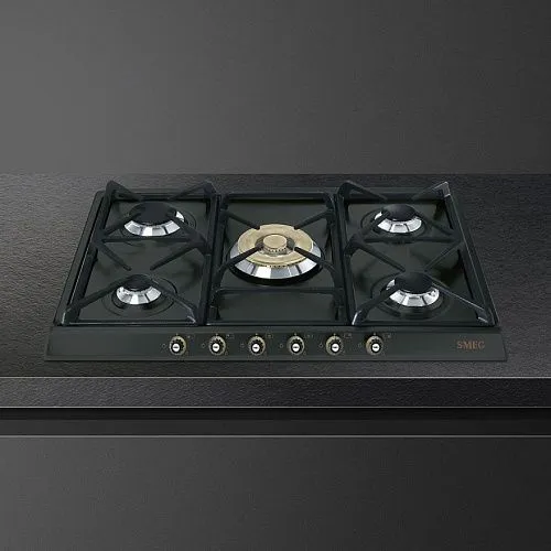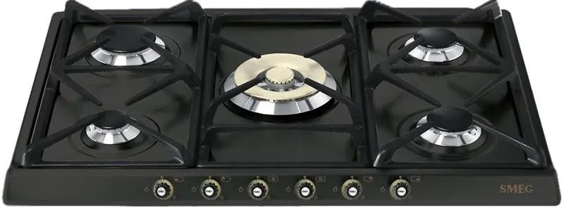 Газовая варочная панель Smeg SR775AO представлена в классическом дизайне черного цвета от производителя Cortina. Эта модель укомплектована пятью различными по мощности газовыми конфорками с автоматическим электроподжигом.