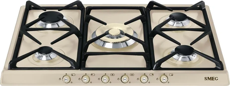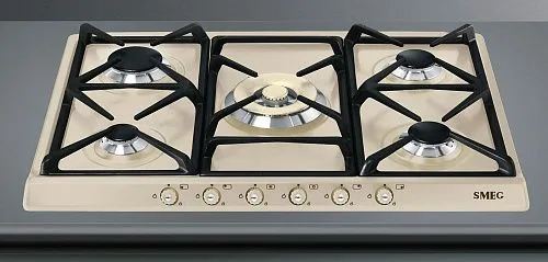 Варочная панель SMEG SR775PO — это великолепная модель с 5 газовыми горелками. Эмалированная сталь бежевого цвета не только выглядит изящно и нежно, но и является прочной, термо и износостойкой, легко очищается и имеет долгий срок службы. Решетки, изготовленные из чугуна, не деформируются во время эксплуатации, просто снимаются и моются, не боятся даже очень высоких температур. Все вместе это дает гарантию надежности и долговечности прибора. А благодаря наличию в комплекте сменных жиклеров, его можно использовать как с природным, так и сжиженным газом.