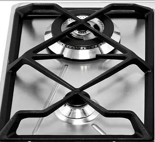 Она относится к серии Victoria и выполнена из нержавеющей стали отличного качества. Этот материал хорошо переносит высокие температуры, не выцветает и выдерживает даже большие нагрузки. На нем не образуются сколы, но необходимо избегать использования абразивных чистящих средств, чтобы не оставить царапины. Решетки сделаны из чугуна, который хорошо держит форму и устойчив, но в то же время легко снимается и очищается. Монтаж осуществляется в столешницу накладным способом.