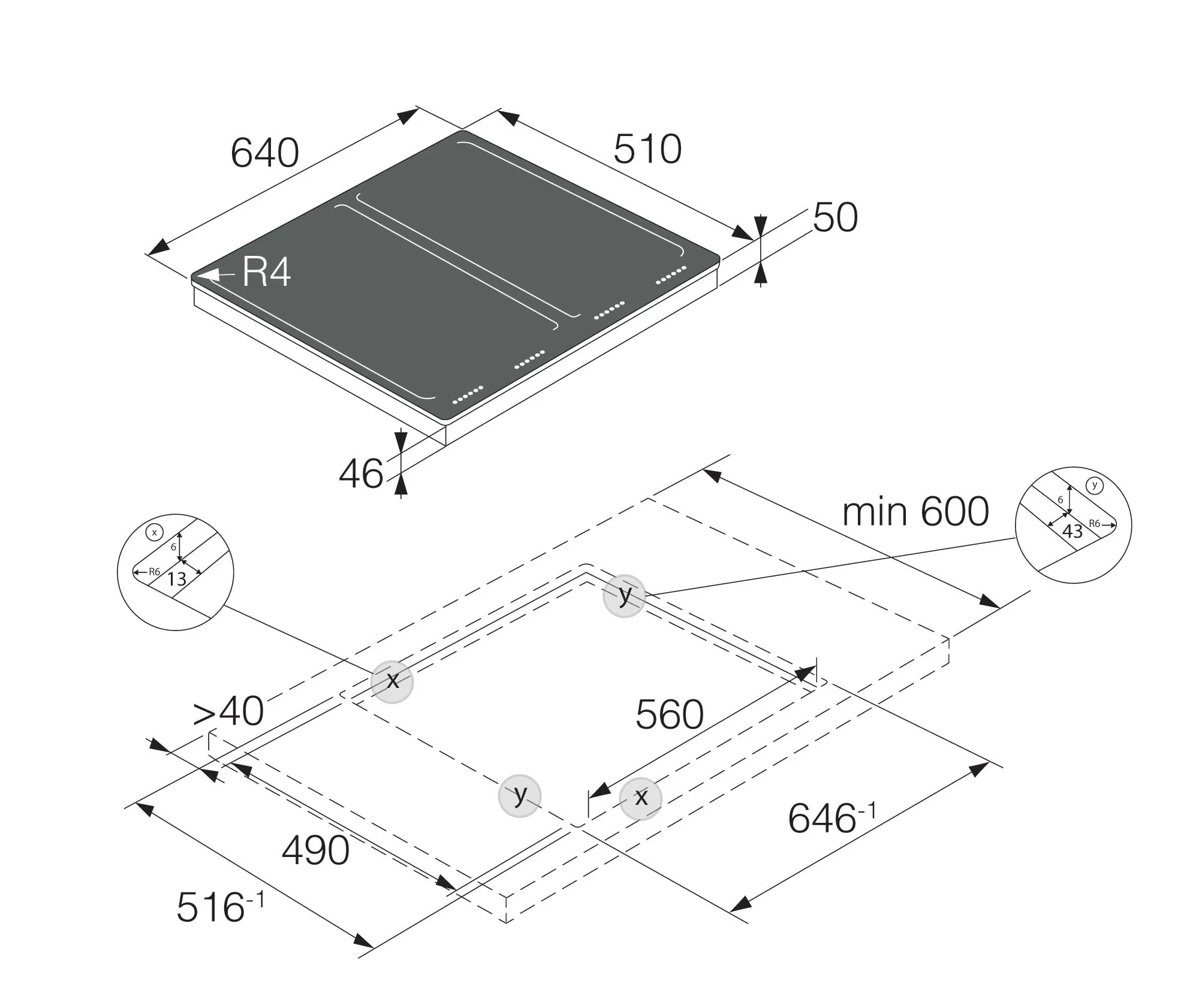 | Ширина варочной поверхности | 640 мм | |