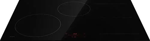 На панели располагаются четыре конфорки с общей мощностью 7.4 кВт, которые обеспечивают быстрый и равномерный нагрев посуды. Каждая конфорка имеет свою мощность и размеры, что позволяет выбирать оптимальный режим для приготовления различных блюд. Управление панелью осуществляется с помощью сенсорных переключателей SliderTouch, а на дисплее отображается информация о текущем режиме работы.