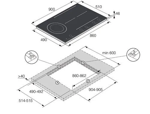 | Ширина шкафа для установки | 900 мм | |