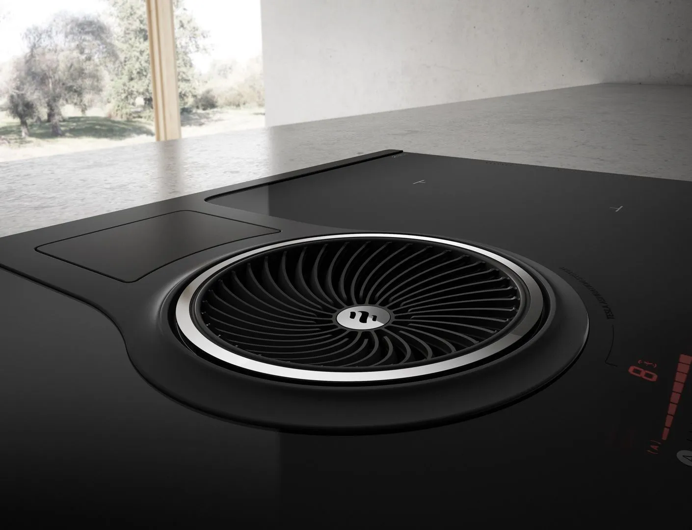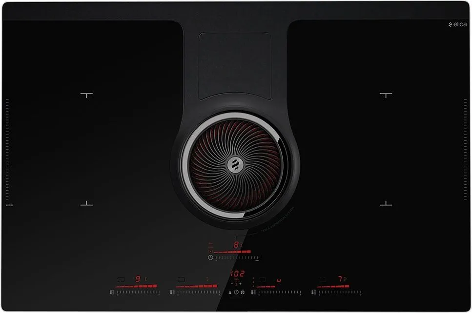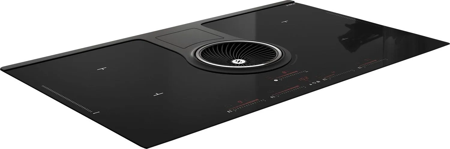 Всего конфорок у этой поверхности четыре, диаметр у всех одинаковый 14.5 см. При объединении двух соседних зон в одну ее диаметр составляет 22 см полезное решение для приготовления в посуде нестандартных размеров. А по центру корпуса встроена компактная, но очень мощная вытяжка. За счет технологии High Perfomance производительность прибора удалось повысить до 1200 м3/час испарения и запахи в воздухе не задерживаются.