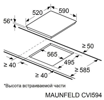 | Ширина варочной поверхности | 590 мм | |