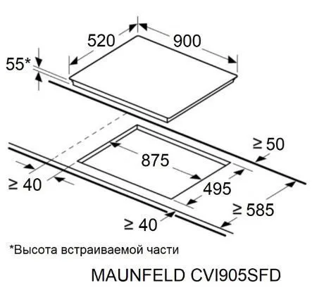 | Ширина варочной поверхности | 900 мм | |