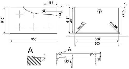 | Ширина варочной поверхности | 900 мм | |