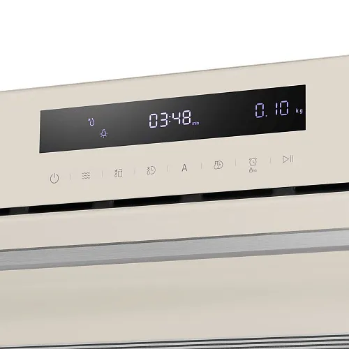 Передняя панель выполнена из стекла. Свет зажигается при открытии дверцы. Настройка программ и таймера осуществляется при помощи сенсорного дисплея.