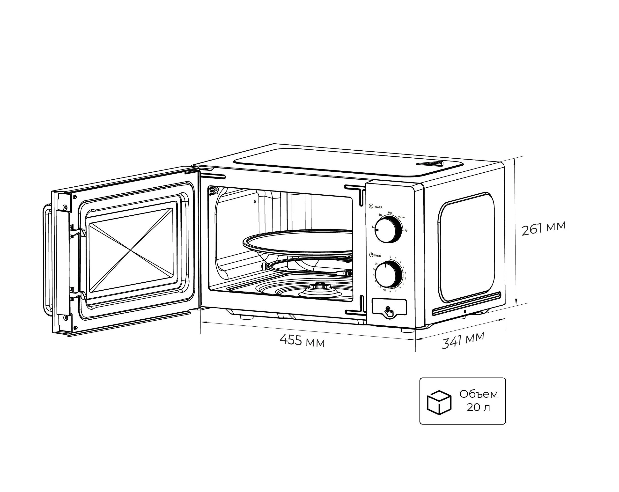 | Объем микроволновки | 20 л | |