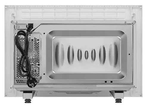 Микроволновая печь стильная модель в черном и белом цвете и объемом 20 литров. Передняя панель сделана из стекла, внутренние стенки — из нержавеющей стали. Она порадует высокой мощностью работы. Таким образом, с множеством поставленных задач данный прибор справится очень быстро: разогреет готовое блюдо, приготовит полуфабрикаты и разморозит запасы из морозильной камеры.