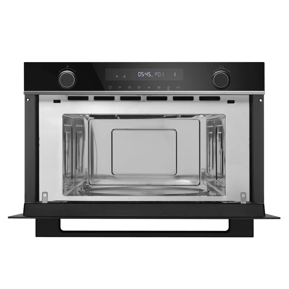 Уникальные микроволновые печи Maunfeld с горизонтальной панелью управления органично впишутся в интерьер Вашей кухни. Стеклянная дверца открывается сверху вниз, как в духовых шкафах. Рабочая камера этой печи имеет большой объём 34 л.