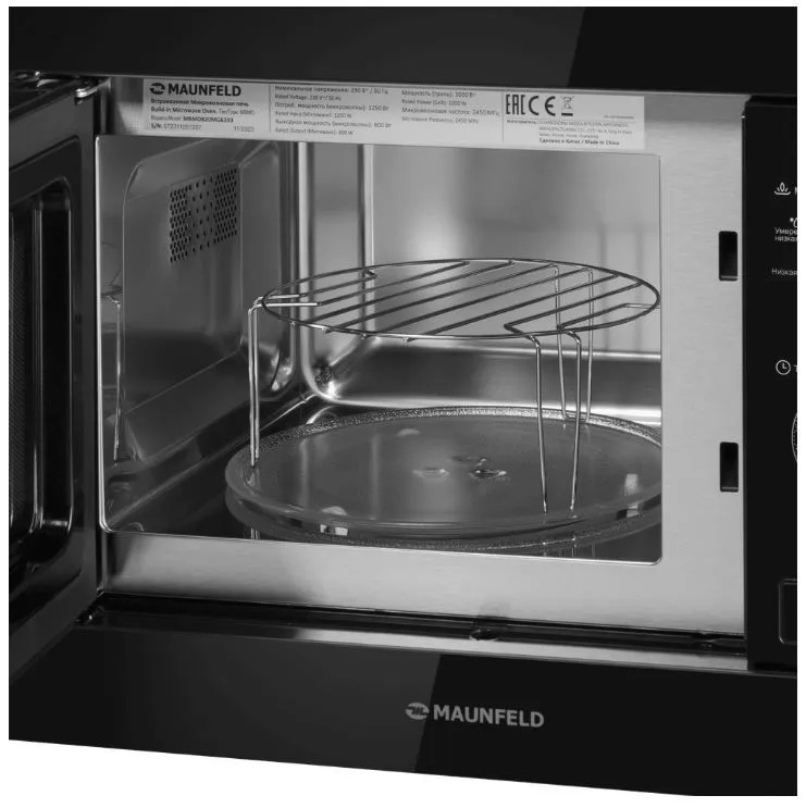В комплекте к СВЧ идет вращающееся кольцо, стеклянный поддон, решётка для гриля и полный набор для установки.