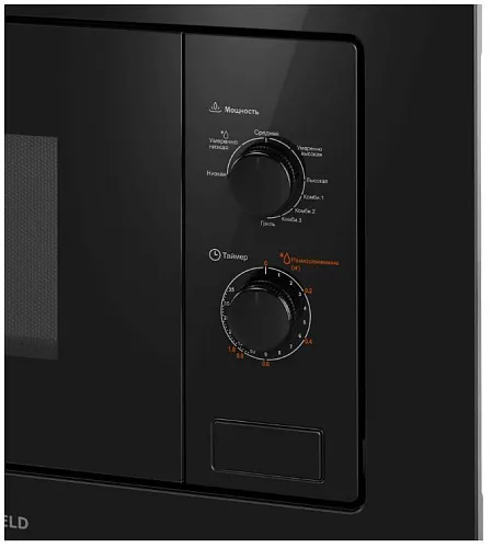 Управление СВЧ осуществляется с помощью 2 поворотных переключателей. Первая ручка – это выбор режима работы. Вторая – механический таймер на 35 минут или выбор веса продукта в режиме разморозки.