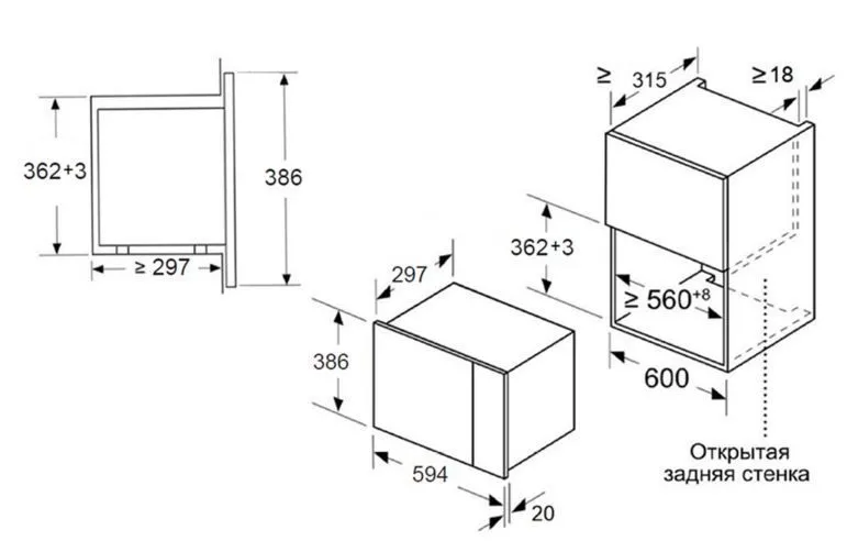 | Ширина шкафа для установки | 600 мм | |