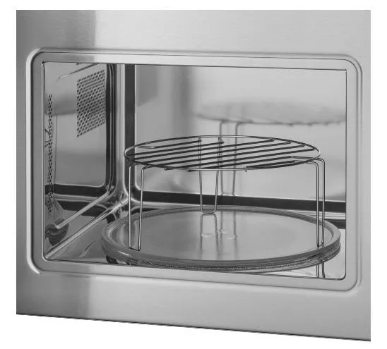 Про безопасность тоже подумали: есть блокировка от детей. Если дверь прибора закрыта, он просто не включится. В комплекте идет большая тарелка для поворотного стола диаметром 255 мм и решетка для гриля. Есть опция логичного выбора настроек и звуковой сигнал об окончании работы, который легко отключить.