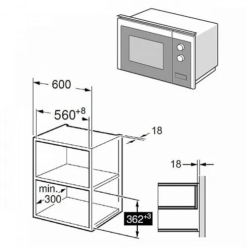 | Ширина шкафа для установки | 600 мм | |