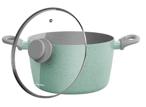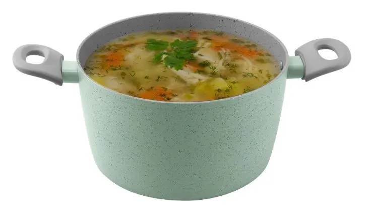 Мраморное антипригарное покрытие абсолютно инертно — это гарантирует, что в пищу не попадет никаких вредных примесей и веществ даже при воздействии очень высоких температур. Поверхность посуды не подвержена загрязнениям и не впитывает запахи.
