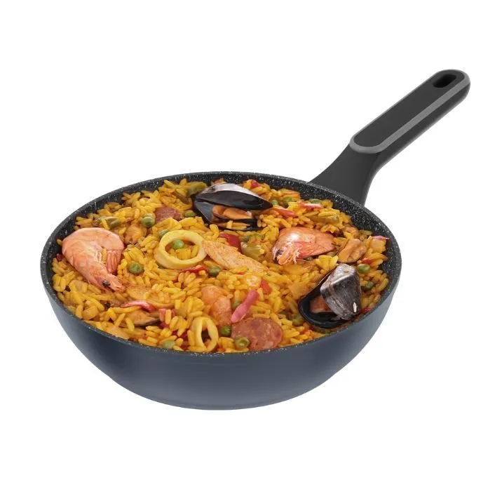 Глубокая сковорода Frida оснащена удобной удлиненной ручкой soft touch, которая не нагревается, не скользит и обеспечивает безопасность при использовании. Ручка выполнена из специального термостойкого материала бакелит, который не только приятен на ощупь, но и долговечен. Благодаря мраморному антипригарному покрытию, поверхность сковороды не подвержена загрязнению и не впитывает запахов.
