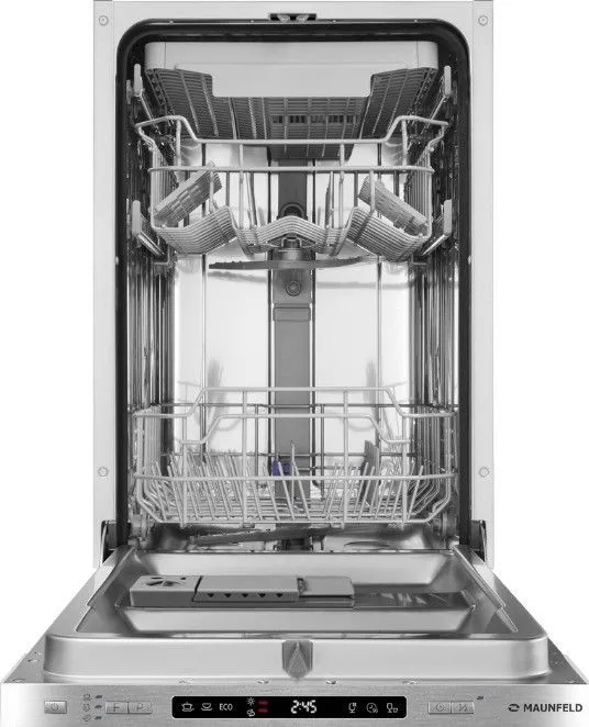 MAUNFELD MLP45130 Light Beam— это узкая модель, шириной 45 см (вместо классических 60 см), но весьма вместительная. За раз она может вымыть сразу много посуды, до 9 комплектов — это оценят в больших семьях, а также те, кто любит готовить, часто принимает гостей.