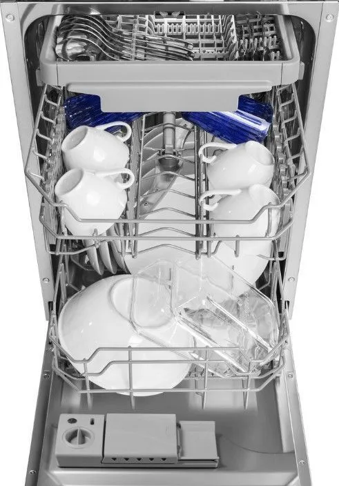 В посудомоечную машину помещается много посуды. Можно накопить её в течение дня или помыть сразу всё после семейного торжества или вечеринки с друзьями. Вместимость — до 9 комплектов посуды.