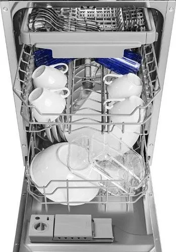 MLP45130 Light Beam избавит вас от необходимости мыть посуду вручную. В машине максимально эффективно организовано внутреннее пространство. Есть удобная корзина для столовых приборов и мелкой утвари. Верхняя корзина — с изменяемой высотой установки, чтобы можно было мыть посуду разного размера и объёмов. В верхней корзине есть складные держатели для бокалов — дополнительное важное удобство.