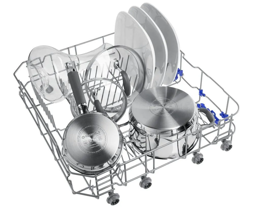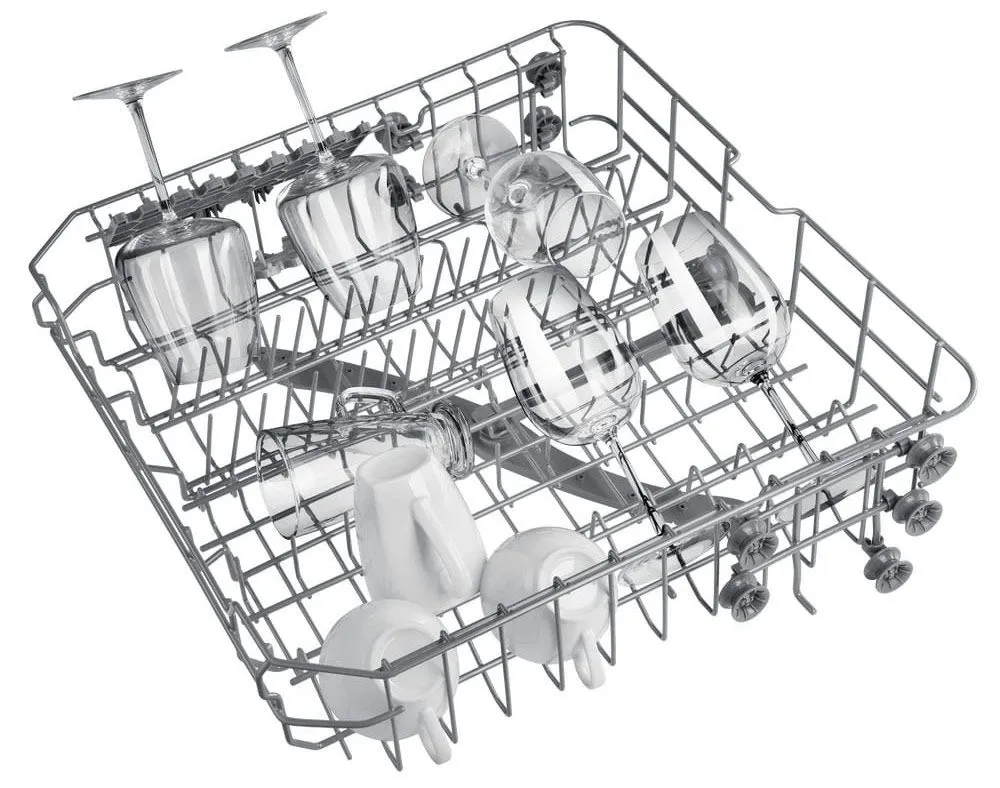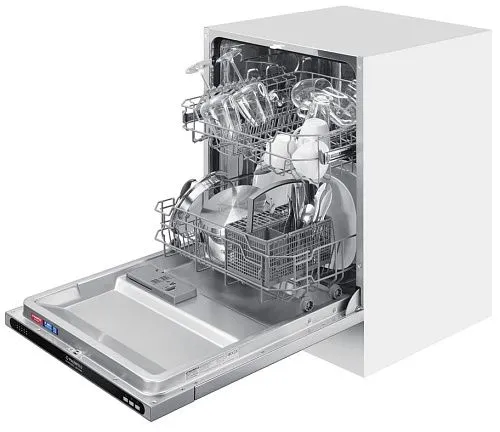 В посудомоечную машину помещается много посуды. Можно накопить её в течение дня или помыть сразу всё после семейного торжества или вечеринки с друзьями. Вместимость — до 12 комплектов посуды.