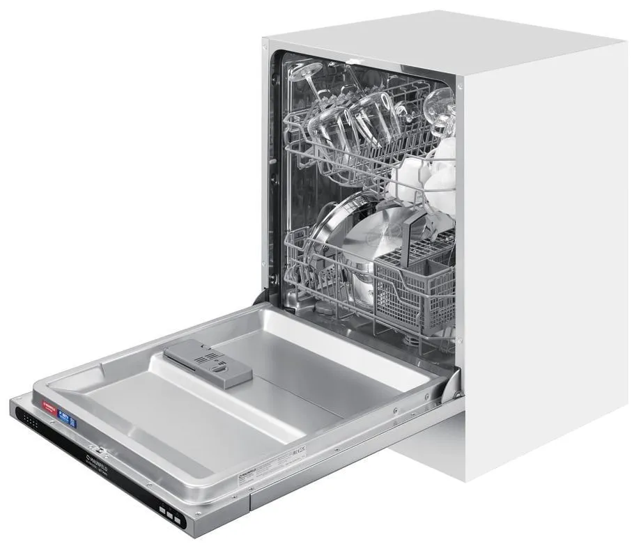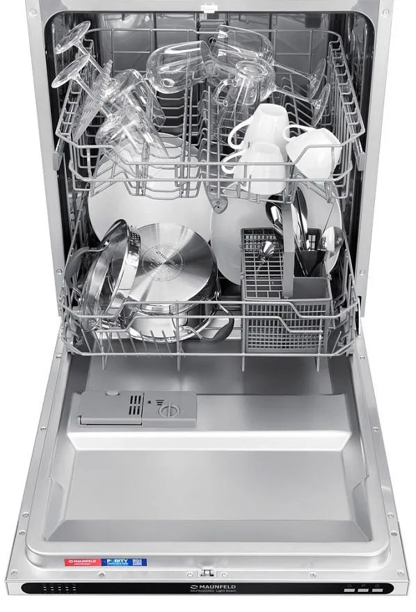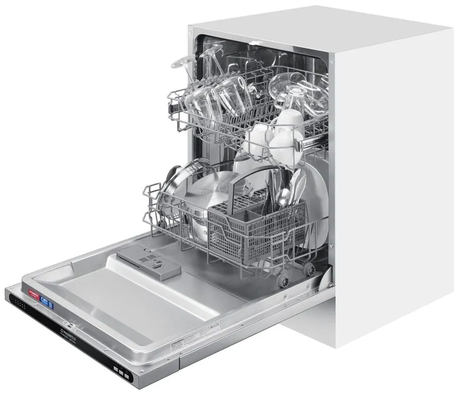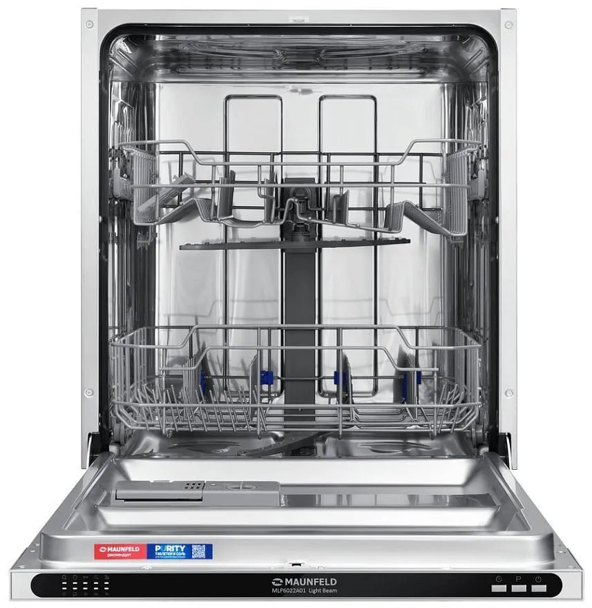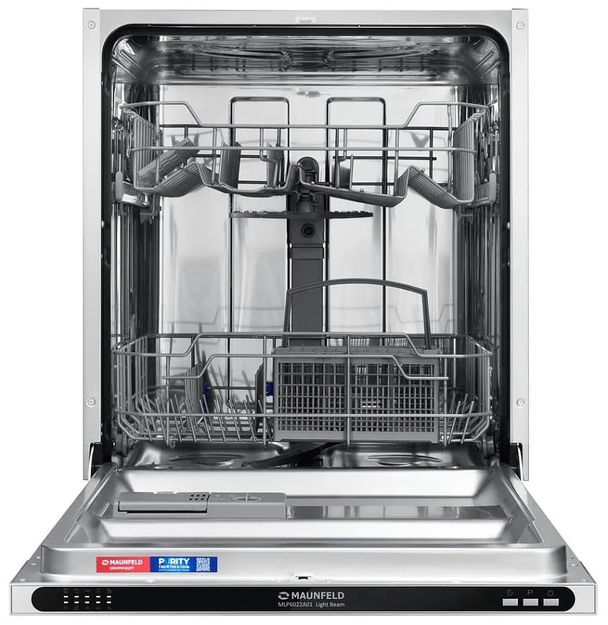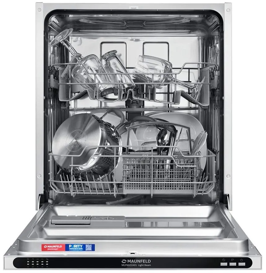 MAUNFELD MLP6022A01 Light Beam — полноразмерная встраиваемая посудомоечная машина, которая избавит вас от необходимости мыть посуду вручную . Вместимость — до 12 комплектов посуды. За раз можно помыть сразу много посуды — это оценят большие семьи и те, кто любит готовить или часто принимает гостей. В машине максимально эффективно организовано внутреннее пространство. Есть удобная корзина для столовых приборов и мелкой утвари. Верхняя корзина — с изменяемой высотой установки, чтобы можно было мыть посуду разного размера и объёмов. В верхней корзине есть складные держатели для бокалов — дополнительное важное удобство. Предусмотрены несколько программ мытья для посуды разной степени загрязнения. Посудомоечная машина MAUNFELD MLP6022A01 Light Beam— помоет посуду без вашего участия, освобождая время для более приятных занятий.