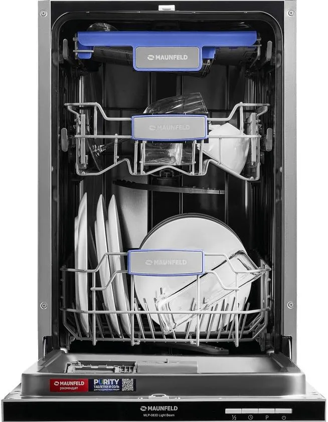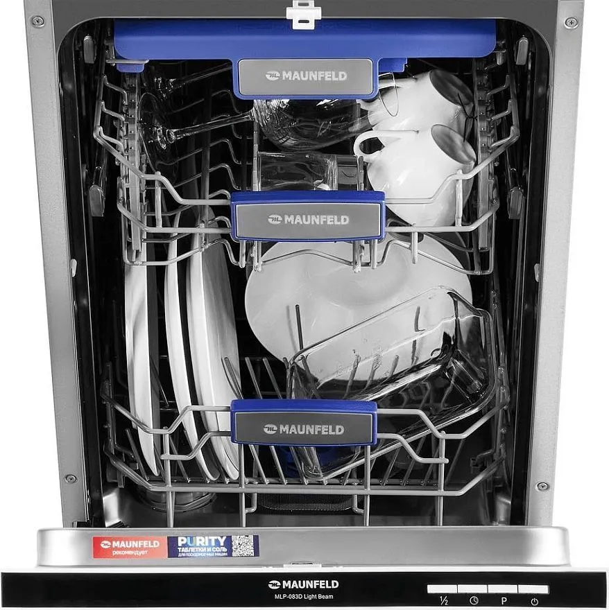 Благодаря использованию специально разработанных корзин MLP-083D позволяет вымыть 10 комплектов посуды.