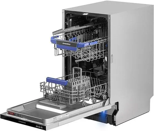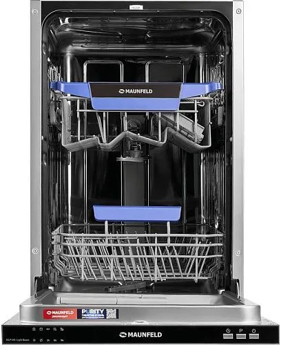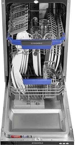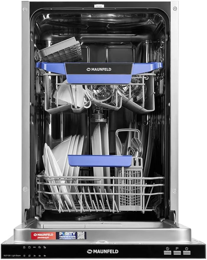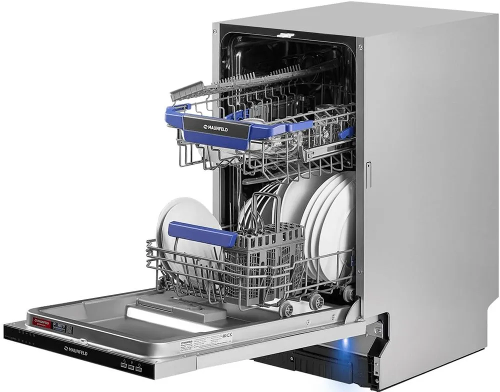 Узкая встраиваемая посудомоечная машина шириной 45 см на 9 комплектов посуды. Внутренняя поверхность выполнена из нержавеющей стали толщиной 0.6-0.8 мм, что обеспечит долгий срок службы при активном использовании.