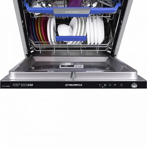 Полновстраиваемая независимая посудомоечная машина с сенсорным управлением. Высокие стандарты качества позволяют добиться долголетней, безотказной работы продукции MAUNFELD.