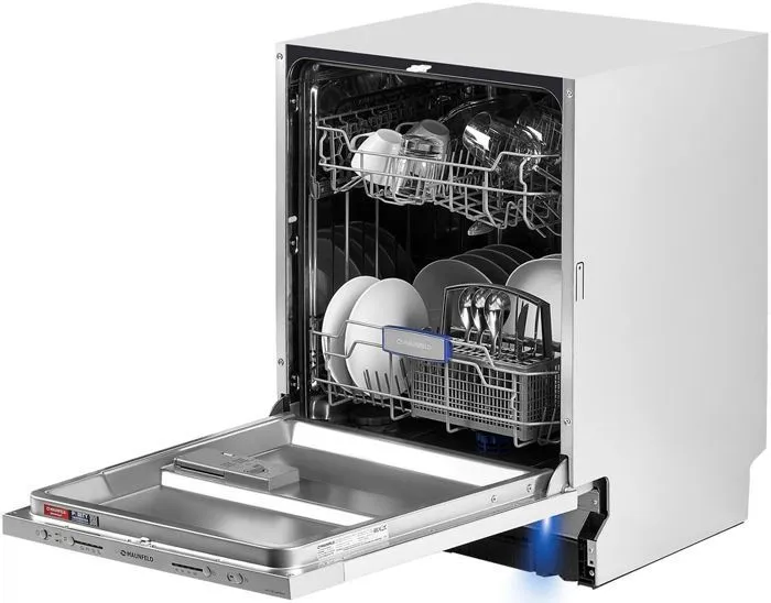 Полноразмерная встраиваемая посудомоечная машина шириной 60 см на 12 комплектов посуды. Внутренняя поверхность выполнена из нержавеющей стали толщиной 0.6-0.8 мм, что обеспечит долгий срок службы при активном использовании.