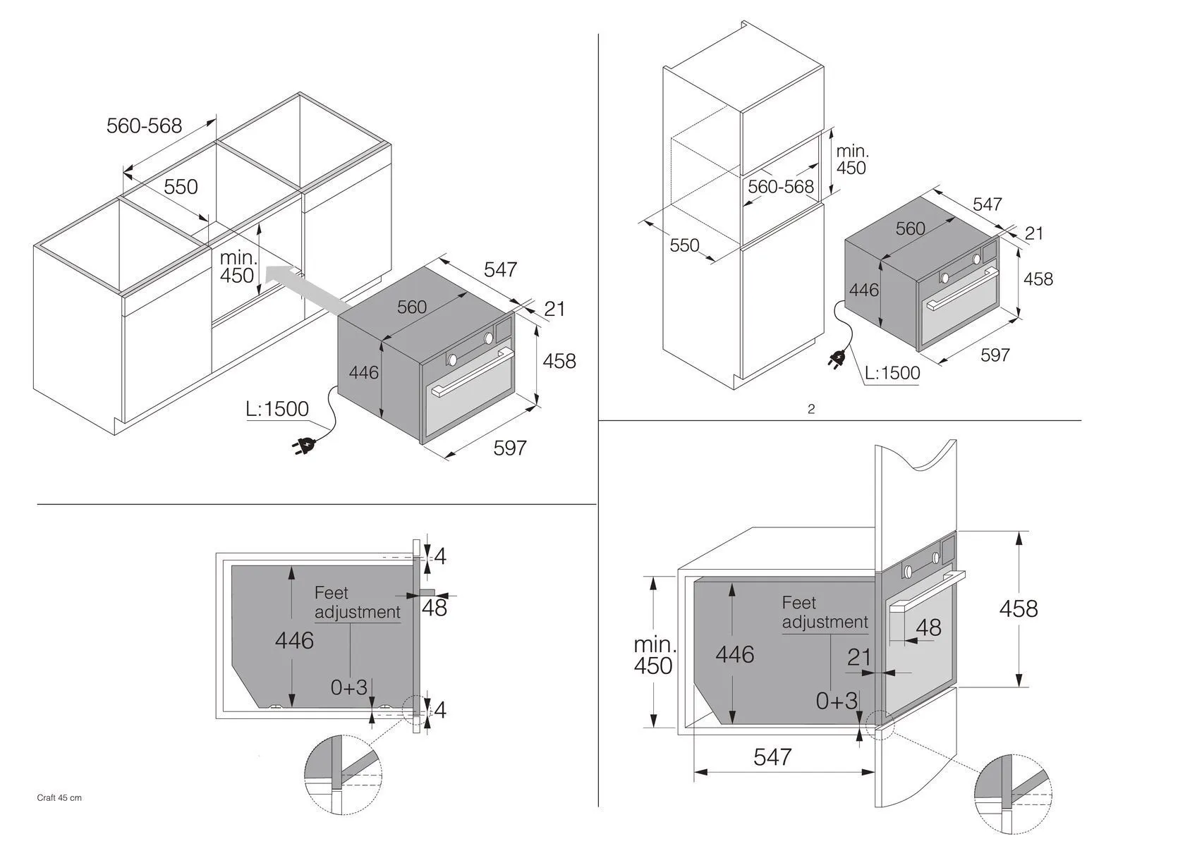 | Ширина шкафа для установки | 600 мм | |