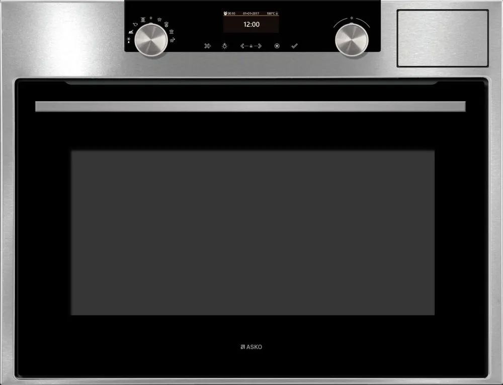 Компактный духовой шкаф Asko OCS8464S сочетает в себе возможность приготовления при помощи различных видов жара, гриля, конвекции, а также пара. Технология MultiSteam 360 позволяет ему равномерно обволакивать пищу, помещённую в камеру, благодаря чему она получается сочной и равномерно пропечённой. Освещение установлено с двух сторон, что повышает комфорт эксплуатации.