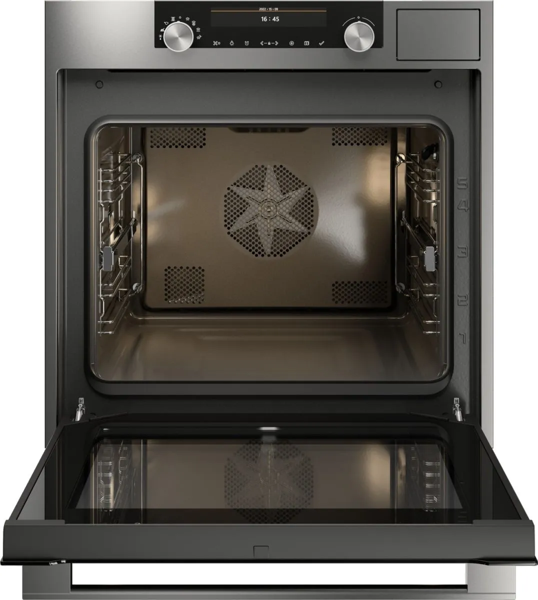 Данная модель предлагает 11 режимов нагрева, 6 программ для приготовления на пару, а также 132 предустановленных рецепта. Достаточно выбрать понравившееся блюдо, его вес/количество, а также степень прожарки. Пошаговое приготовление даёт возможность запрограммировать несколько последовательных этапов для наилучшего результата. Автоматическое запекание AutoRoast создаёт условия для идеальной прожарки мяса, делая его сочным и румяным.