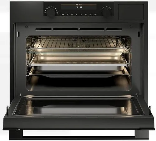 Компактный духовой шкаф Asko OCSM8487A1 называют 5-в-1 за то, что это одно устройство имеет пять глобальных режимов: нагрев, гриль, конвекция, микроволны и пар. Они могут комбинироваться друг с другом и дают итого 20 различных режимов работы. С ними вы сможете приготовить и экзотическое, и технически сложное блюдо. Чтобы не ошибиться с настройками, воспользуйтесь предустановленными программами. В данной модели их 143. Вам нужно выбрать блюдо (в некоторых случаях нужно указать вес и степень пропекания), а необходимые температуру и время система задаст сама.