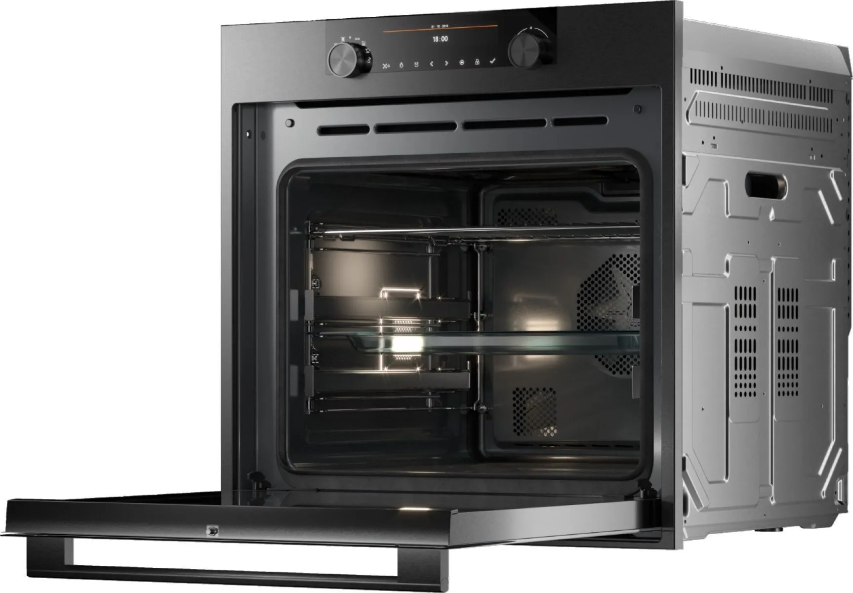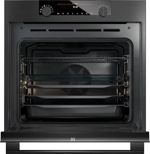 Внутренняя камера духовки покрывается специальной эмалью и имеет объем в 73 литра. Для приготовления блюд используется 5 уровней, на которые можно установить противни и решетки-гриль. Дверца изготавливается по технологии "Холодный фронт" с 3 защитными стеклами OpenView. Шарниры GentleClose упрощают открывание и закрывание дверцы.