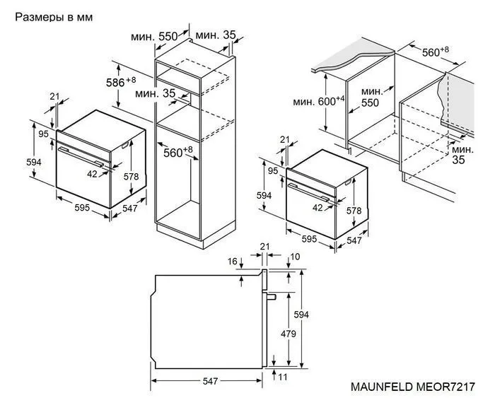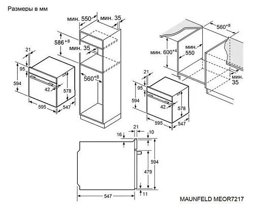 | Ширина шкафа для установки | 600 мм | |