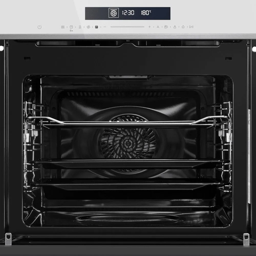 Духовой шкаф имеет объем 72 литров, так что вы можете готовить разные блюда в существенно большем объеме. Вы можете приготовить несколько блюд одновременно на разных противнях, или установить в печь большие кастрюли для приготовления больших мясных блюд или праздничной индейки.