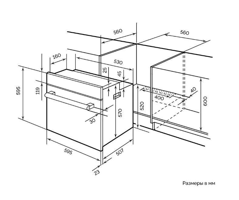 | Ширина шкафа для установки | 600 мм | |