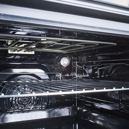 Тройное стекло дверцы обеспечивает термозащиту, предотвращая нагрев внешней поверхности. Внутреннее стекло легко снимается, а эмаль легкой очистки упрощает уход за духовкой.