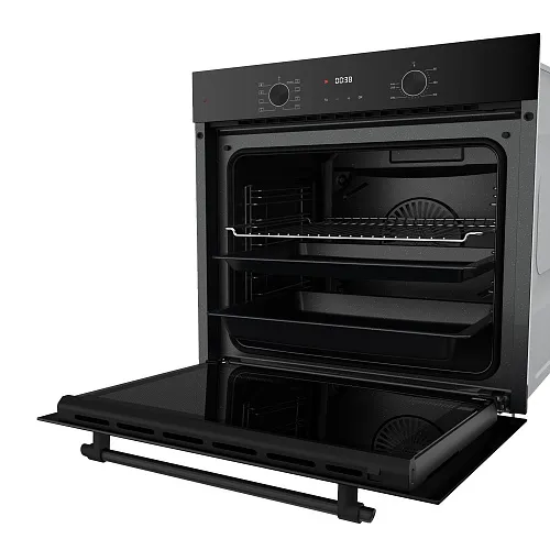 Духовой шкаф относится к серии MAX, основная особенность которой — увеличенный объем рабочей камеры (78 литров). Кроме того, эти модели имеют утапливаемые ручки управления, а в дверце установлено стекло немецкого бренда SCHOTT.