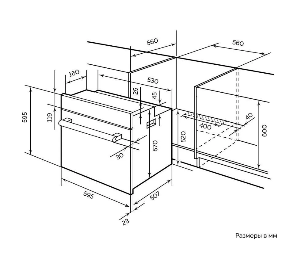 Электрический духовой шкаф EDS 101 — одна из самых продвинутых моделей в ассортименте LEX. Устройство может работать в 10 режимах, оснащено усиленным грилем, функцией конвекции, кольцевым нагревательным элементом для идеального пропекания любимых блюд даже на нескольких уровнях рабочей камеры. Современная сенсорная панель управления с дисплеем делает управление духовым шкафом максимально понятным и удобным, а отсутствие механических переключателей облегчает чистку. Благодаря встроенному таймеру вам не придется беспокоиться, что продукты пригорят или не дойдут до готовности, а блокировка управления поможет избежать случайной смены настроек и обеспечит безопасность во время приготовления.