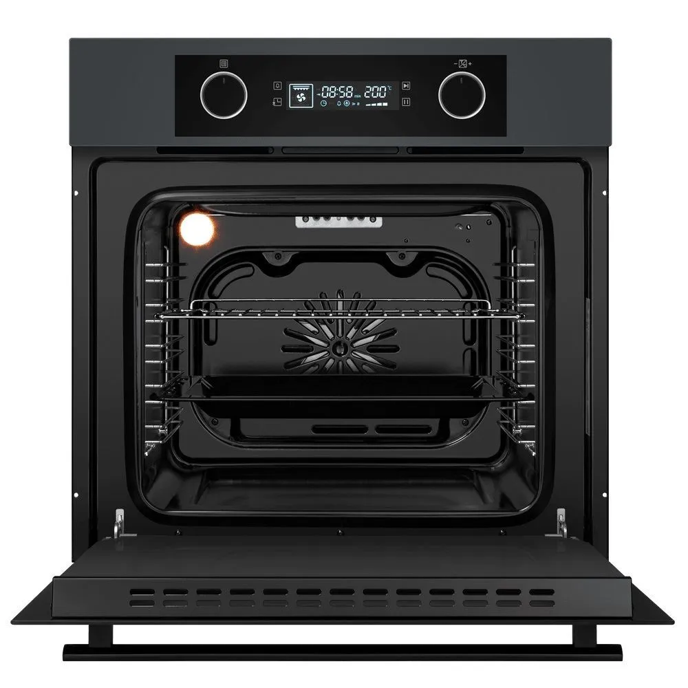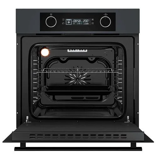 Большой объём 60 л. При таком объёме вы можете готовить одновременно несколько блюд, разместив решетку или противень на одном из 5 уровней боковых направляющих.