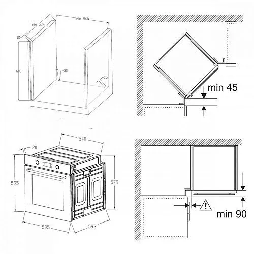 | Ширина шкафа для установки | 600 мм | |