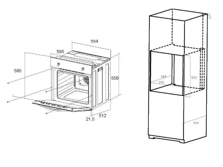 духовой камеры не видно, будь то сковородки, противни т.д, а при