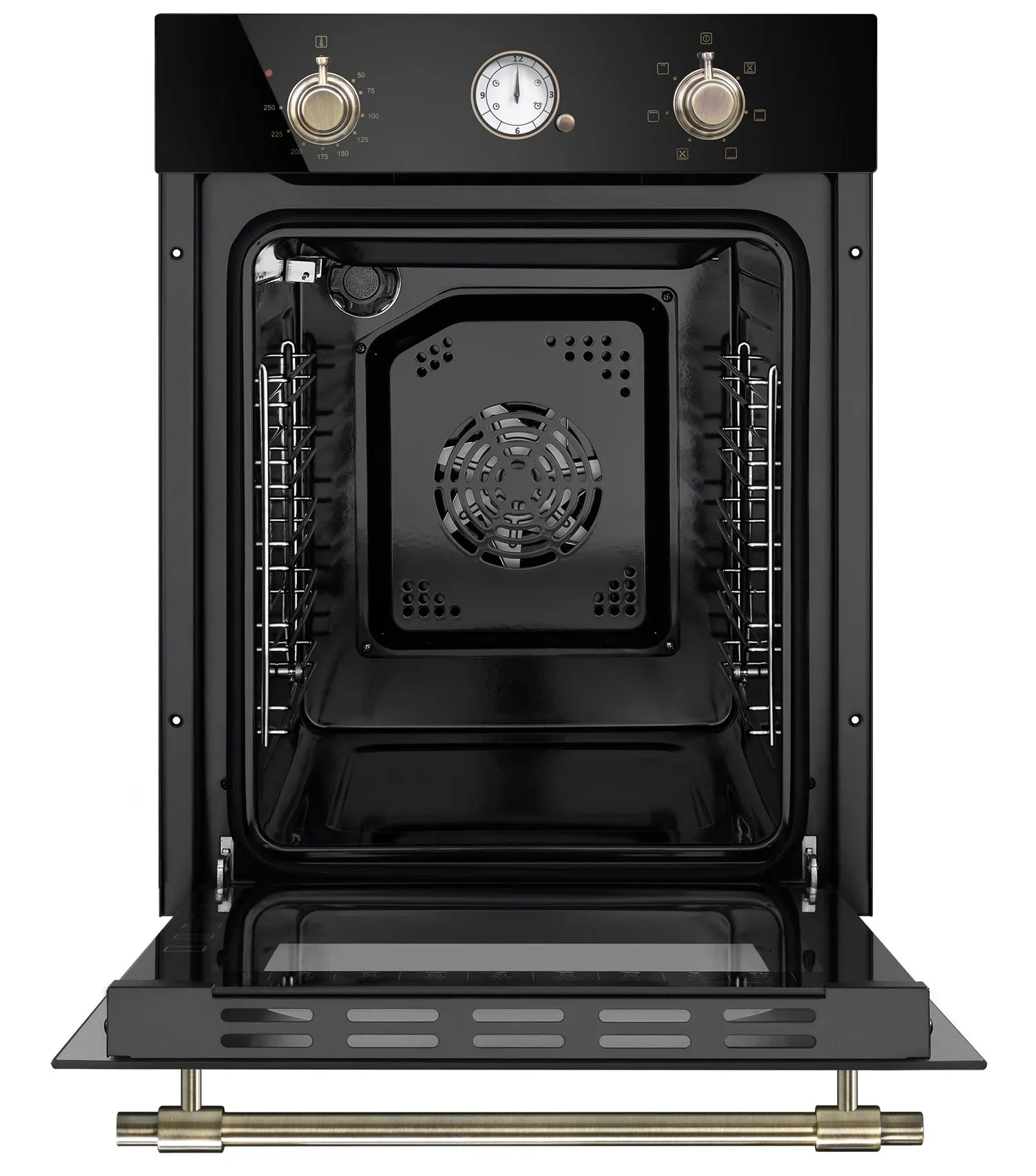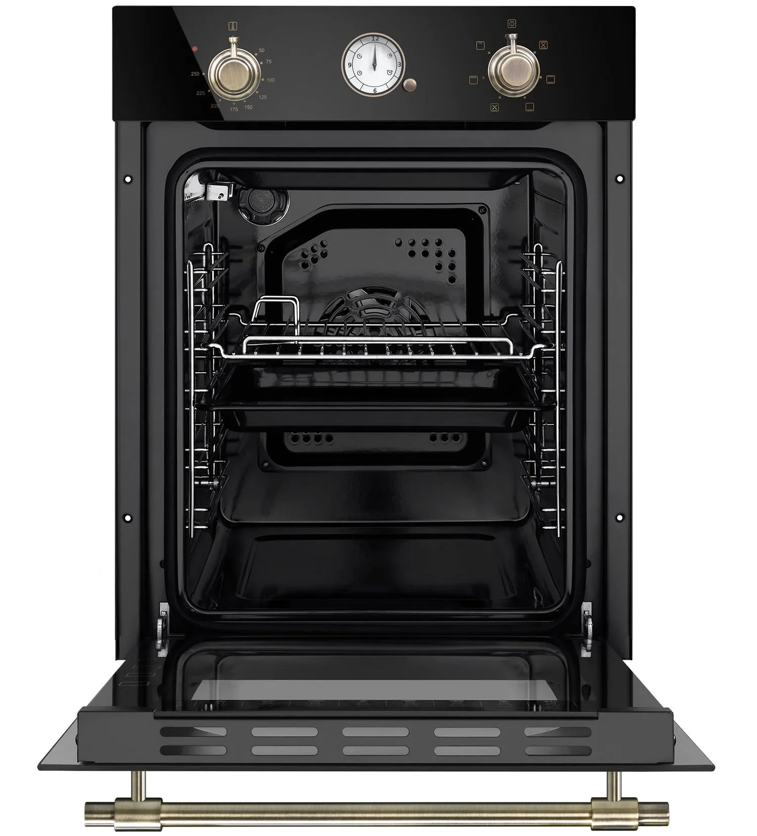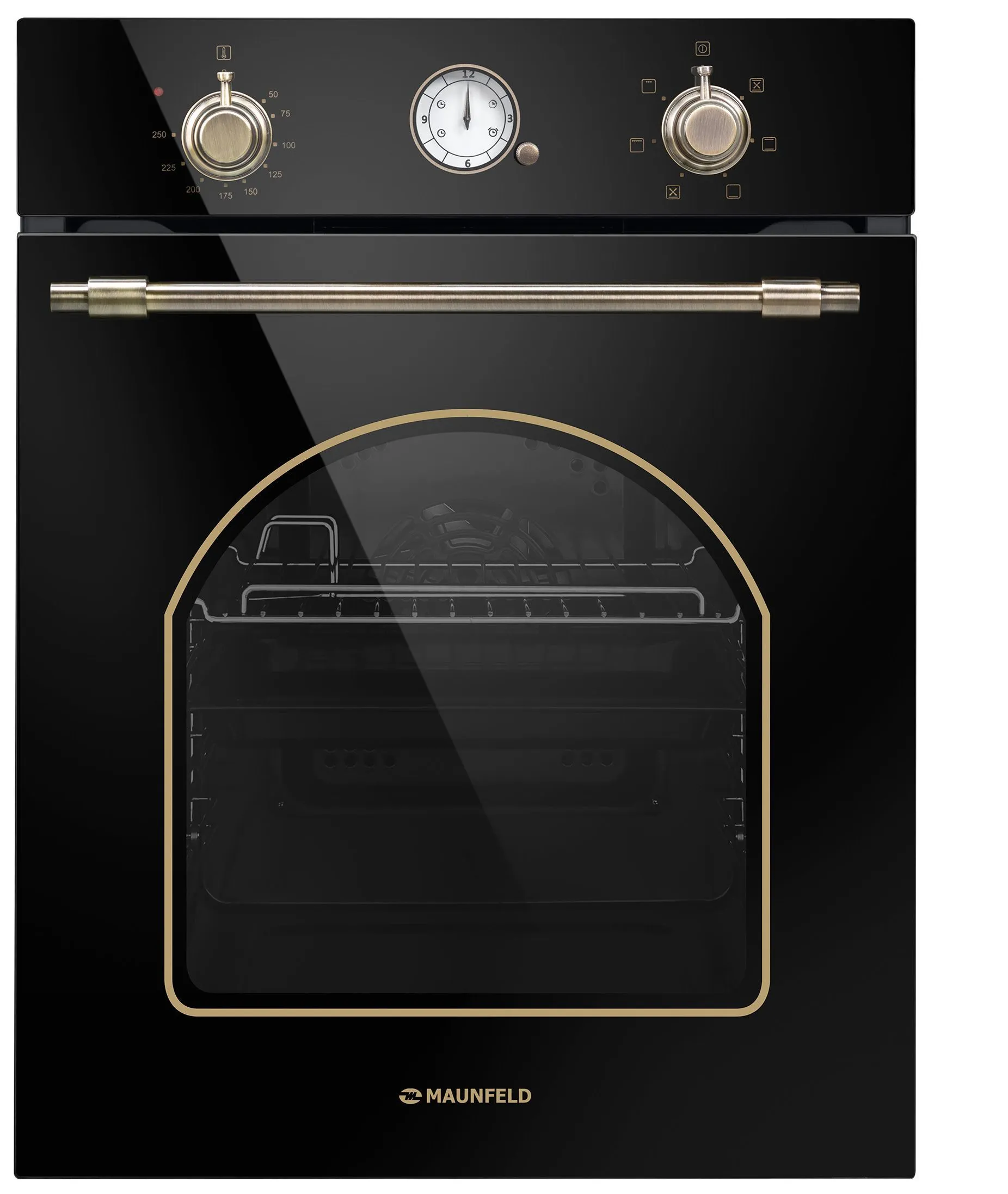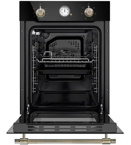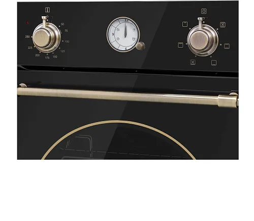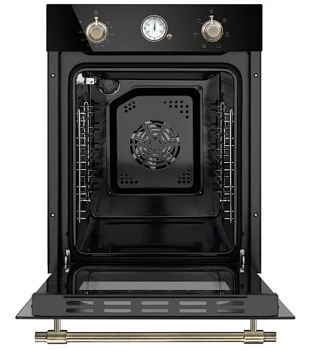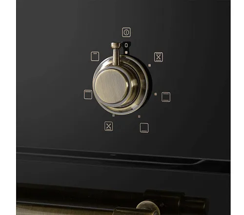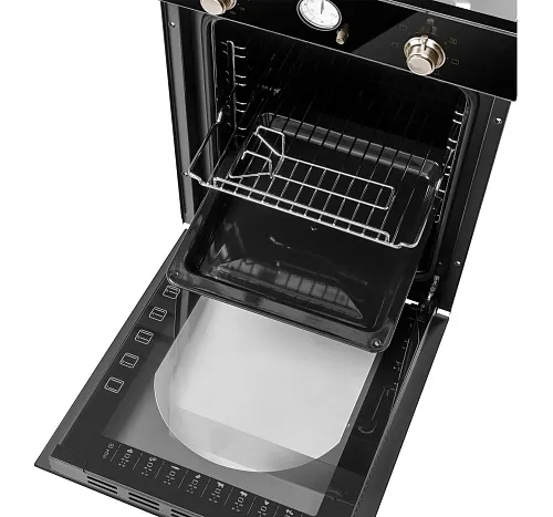Механическое управление осуществляется цельнометаллическими поворотными ручками в ретро стиле. Можно выставить температуру готовки, установить таймер (0-55 мин) и выбрать один из 7 режимов работы: верхний + нижний нагрев, полный гриль, гриль, конвекция с нижним нагревом, конвекция с верхним и нижним нагревом/интенсивная выпечка, нижний нагрев, освещение