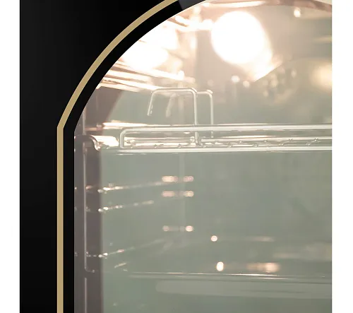 Дверца духового шкафа состоит из 2-х стекол, что создает холодный фронт и делает процесс приготовления безопасным, исключая возможность ожога при касании.