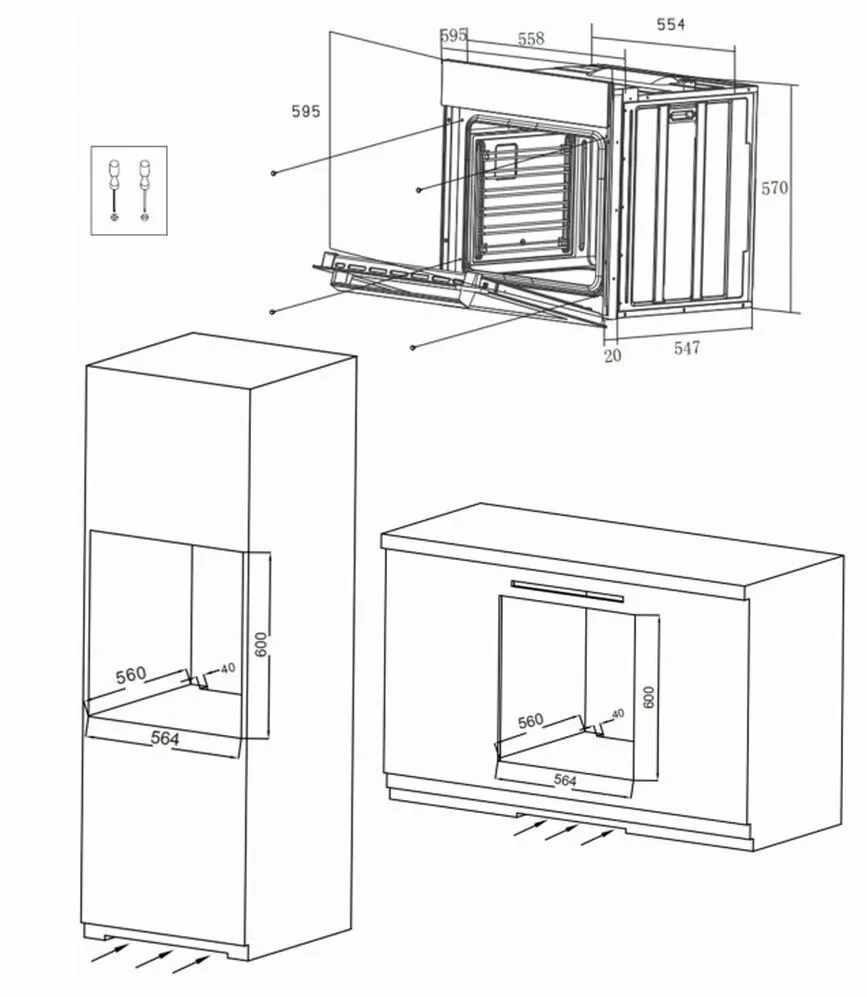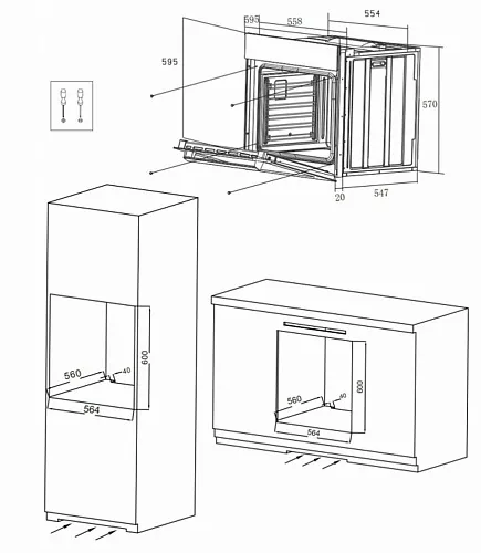 | Ширина шкафа для установки | 600 мм | |